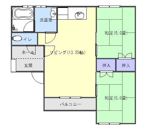 | 設備 | エアコン、FFストーブ、システムキッチン、洗面化粧台、室内洗濯機置場、照明器具、カーテンレール、 シューズBOX、押入れ、物置 |