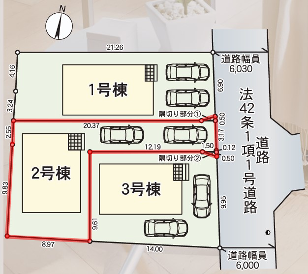 | 土地面積 | 154.03㎡ | 他、私道面積 | 隅切合計0.74㎡(持分1/2) | |