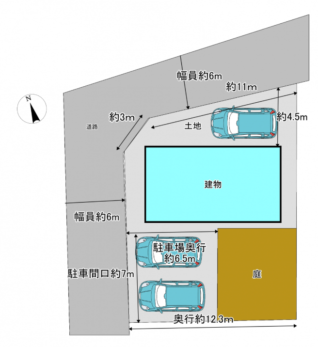 | 接道状況 | 西側 6.00m 公道、北側 6.00m 公道 | |||