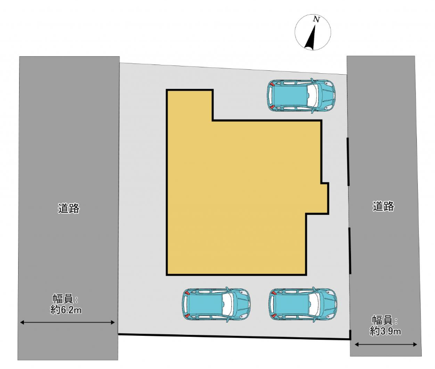 | 接道状況 | 北東側 3.90m 公道 南西側 6.20m 私道 | |||