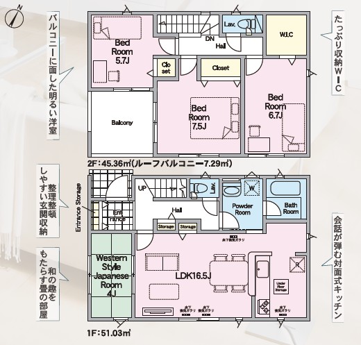 | 間取内訳 | 1階:LDK16.5・和4 2階:洋5.7・洋7.5・洋6.7 | |||