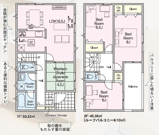 | 間取内訳 | 1階:LDK16.5・和4.5 2階:洋8帖・洋6.5・洋6 | |||