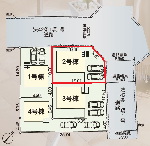 | 接道状況 | 北西側幅員9.0m公道、東側幅員8.94m公道 | |||